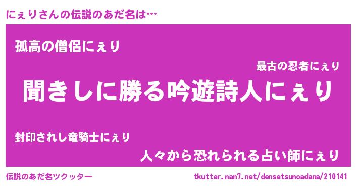 | 意味不明あだ名 | 『永久保存にぇり』『自称にぇり』 |