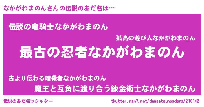 | 意味不明あだ名 | 『なかがわまのんフォーエバー』 |
