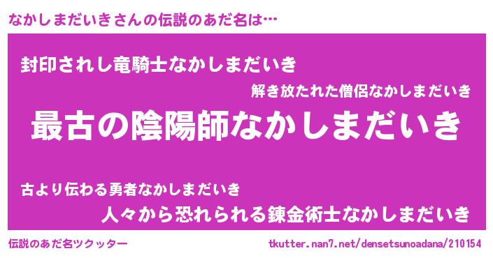 | 意味不明あだ名 | 『なかしまだいきフォーエバー』 |