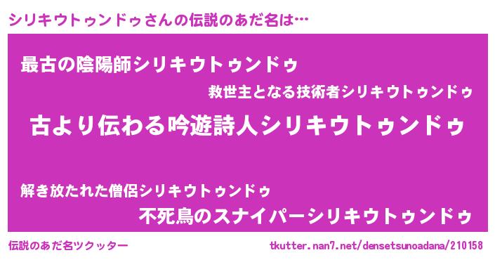 | 意味不明あだ名 | 『永久保存シリキウトゥンドゥ』 |