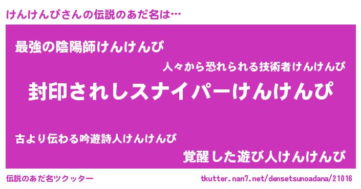 | ファンタジー風あだ名 | 『ケンフェル』『エターナルケンケンピー』 |