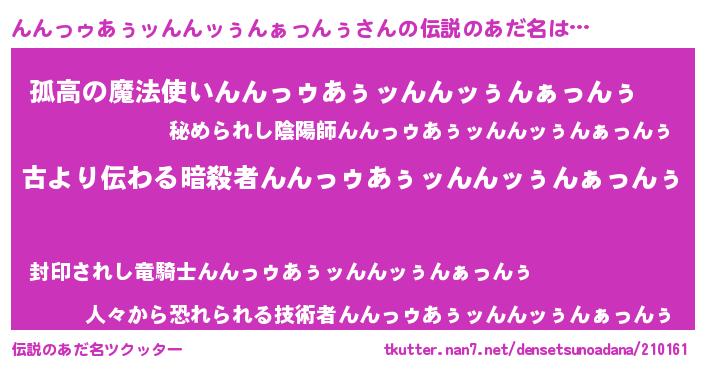 | ヘコむあだ名 | 『んんっゥあぅッんんッぅんぁっんぅ(笑)』 |