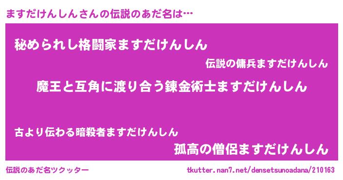 | 女子向けラノベタイトル風あだ名 | 『闇のますだけんしん』 |