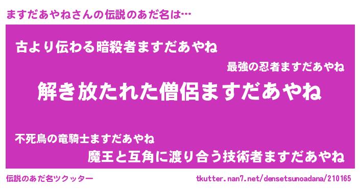 | 意味不明あだ名 | 『とにかく怪しいますだあやね』 |