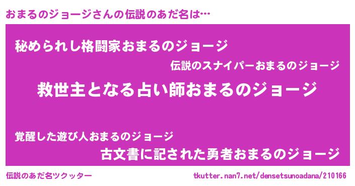 | ヒーロー風カッコイイあだ名 | 『慈愛の使者おまるのジョージ』 |