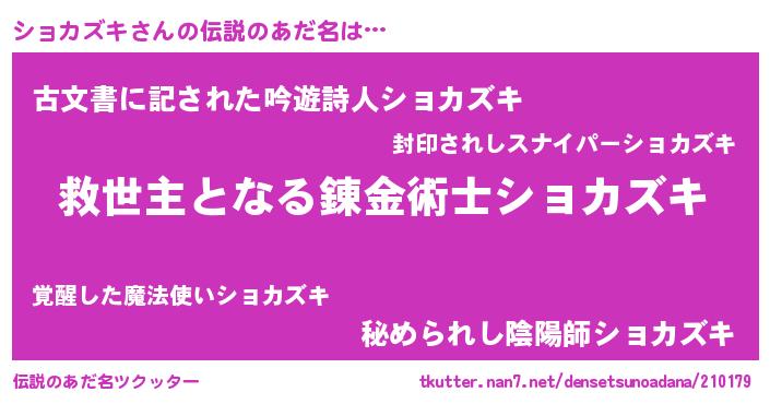 | 男性向けラノベタイトル風あだ名 | 『ノーゲーム・ノーショカズキ』 |