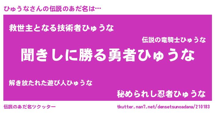 | ヒーロー風カッコイイあだ名 | 『仮面ヒュダー』『ネオヒュウナ』 |