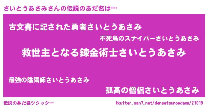 | ヒーロー風カッコイイあだ名 | 『慈愛の使者さいとうあさみ』 |