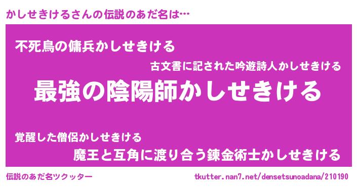 | ファンタジー風あだ名 | 『エターナルカシセキケルー』 |