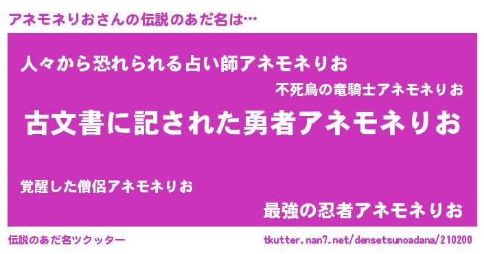 | ヒーロー風カッコイイあだ名 | 『ネオアネモネリオ』『仮面アネダー』 |