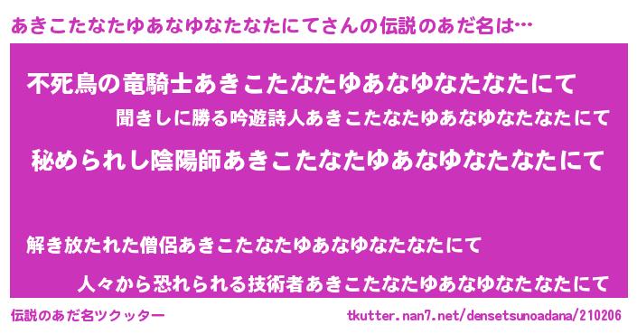 | 胡散臭い通販商品みたいなあだ名 | 『幸せが訪れる高級そうな皿…その名も「あきこたなたゆあなゆなたなたにて」』 |