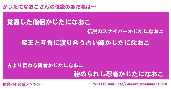 | 男性向けラノベタイトル風あだ名 | 『おまえをオタクにしてやるから、俺をかじたになおこにしてくれ! 』 |