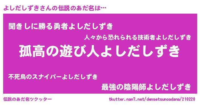 | 意味不明あだ名 | 『とにかく怪しいよしだしずき』 |