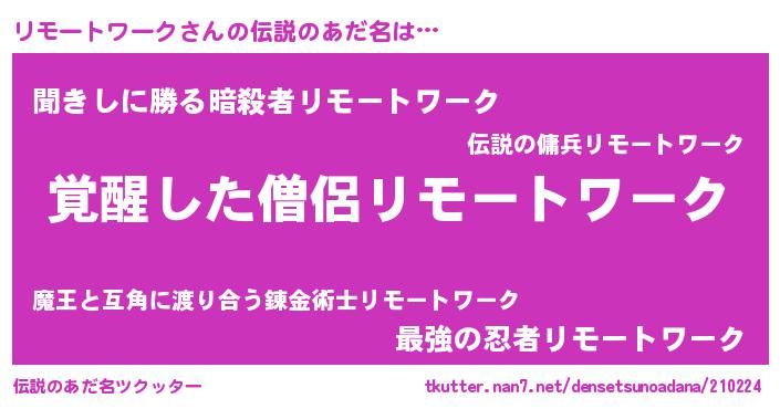 | ポケモン風あだ名 | 『ヒリモートワーク』『リモセウス』 |