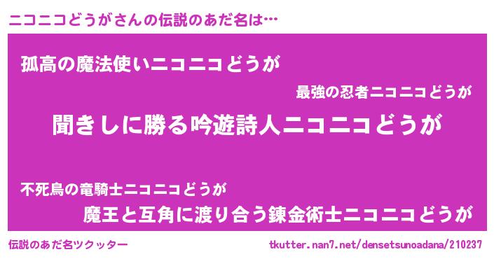 | ヒーロー風カッコイイあだ名 | 『仮面ニコダー』『ネオニコニコドウガ』 |