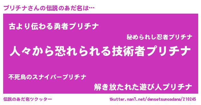 | 意味不明あだ名 | 『自称プリチナ』『永久保存プリチナ』 |
