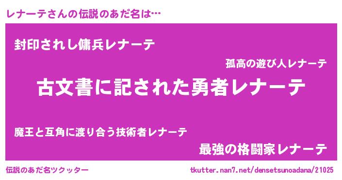 | ヘコむあだ名 | 『レナーテ(遠い目)』『レナもー』 |