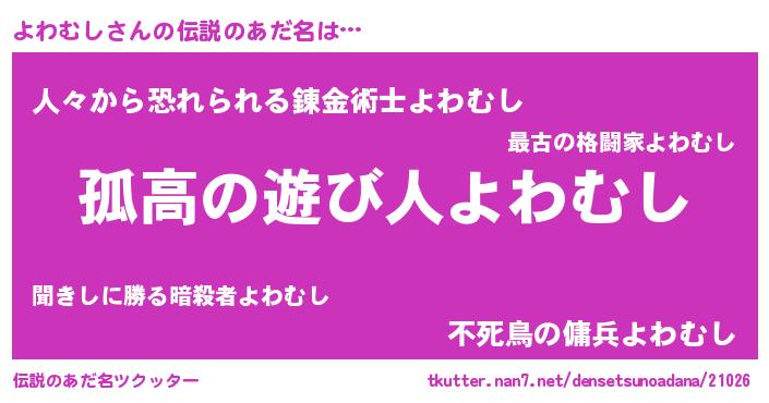 | 意味不明あだ名 | 『とにかく怪しいよわむし』 |