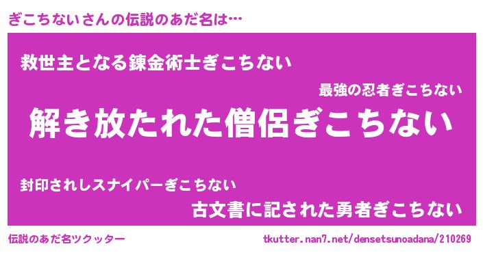 | 意味不明あだ名 | 『住所不定無職ぎこちない(50歳)』 |