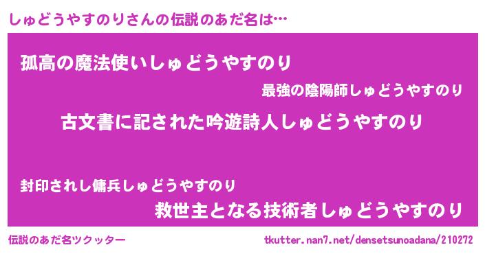 | 意味不明あだ名 | 『永久保存しゅどうやすのり』 |