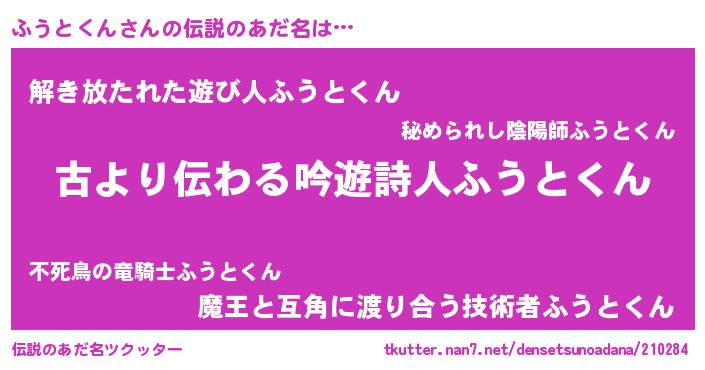 | 男性向けラノベタイトル風あだ名 | 『ふうとくんという概念が存在しない退屈な世界 』 |