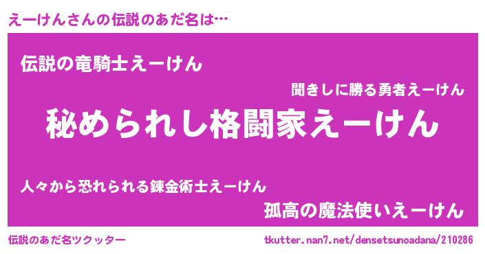 | ヒーロー風カッコイイあだ名 | 『ウルトラえーけんマン』『魔戒騎士エー』 |