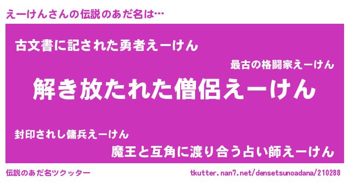 | 意味不明あだ名 | 『住所不定無職えーけん(14歳)』 |