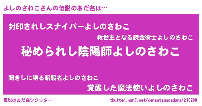 | ファンタジー風あだ名 | 『エターナルヨシノサワコー』 |