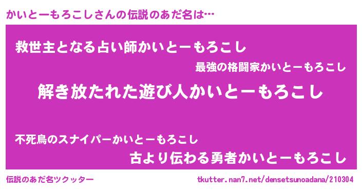 | 意味不明あだ名 | 『住所不定無職かいとーもろこし(95歳)』 |