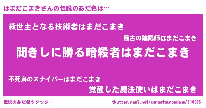 | 意味不明あだ名 | 『自称はまだこまき』 |