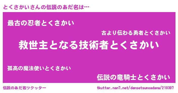 | 意味不明あだ名 | 『住所不定無職とくさかい(8歳)』 |