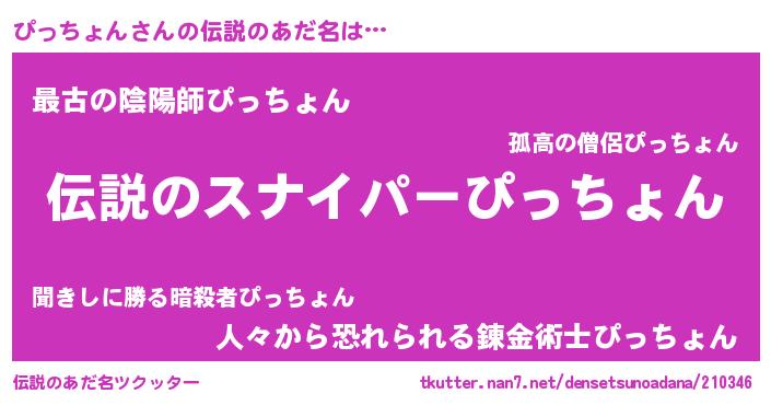 | 胡散臭い通販商品みたいなあだ名 | 『必ず成功する霊験あらたかなお札…その名も「ぴっちょん」』 |