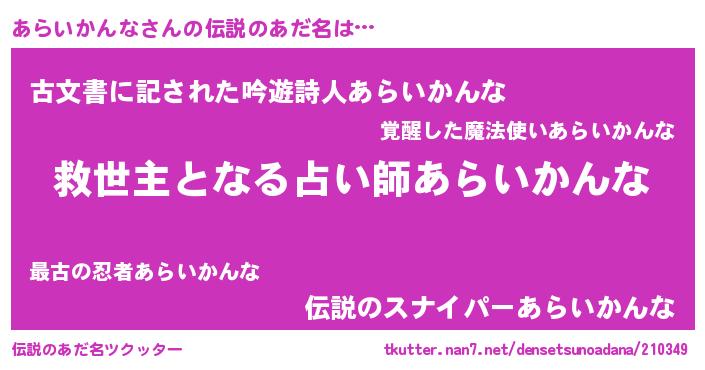 | 意味不明あだ名 | 『自称あらいかんな』 |
