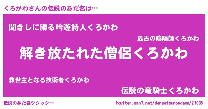 | 意味不明あだ名 | 『住所不定無職くろかわ(53歳)』 |