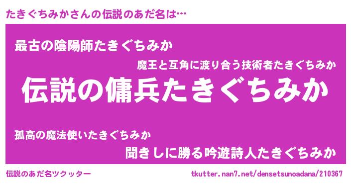 | 胡散臭い通販商品みたいなあだ名 | 『必ず成功する水晶球…その名も「たきぐちみか」』 |