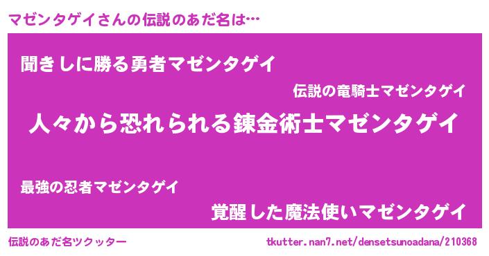 | ヒーロー風カッコイイあだ名 | 『正義の使者マゼンタゲイ』 |
