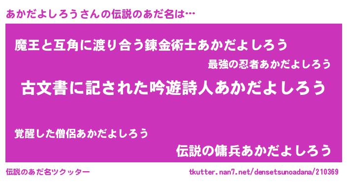 | 意味不明あだ名 | 『永久保存あかだよしろう』 |