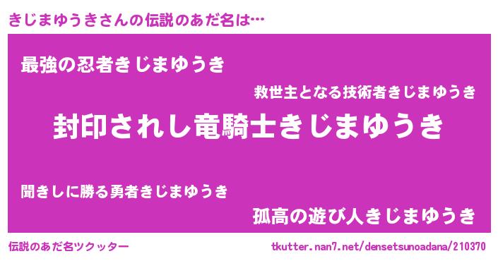 | 胡散臭い通販商品みたいなあだ名 | 『億万長者になれるブレスレット…その名も「きじまゆうき」』 |