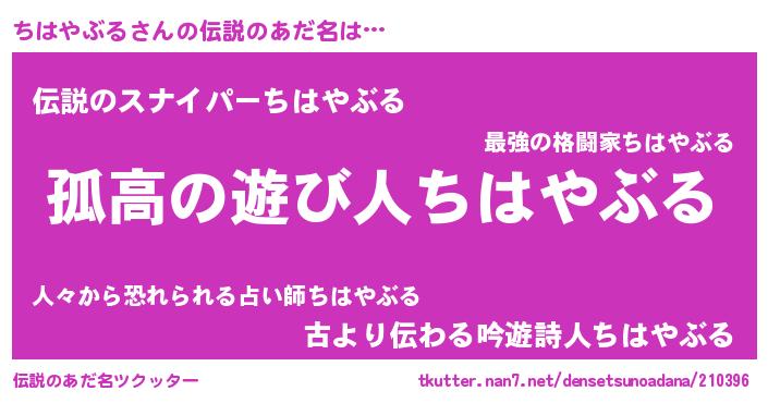 | 意味不明あだ名 | 『住所不定無職ちはやぶる(95歳)』 |