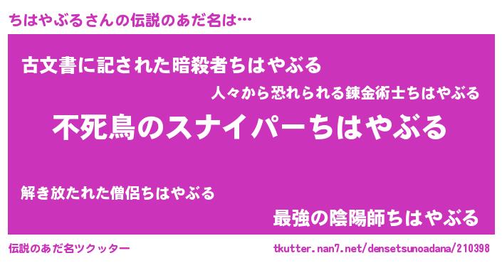 | ファンタジー風あだ名 | 『ゼチハトゥ』『チハフェル』 |