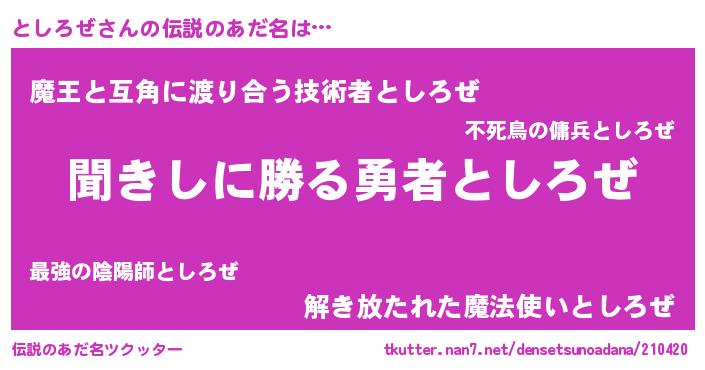 | ヒーロー風カッコイイあだ名 | 『ネオトシロゼ』『愛の使者としろぜ』 |