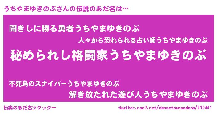 | 意味不明あだ名 | 『うちやまゆきのぶフォーエバー』 |