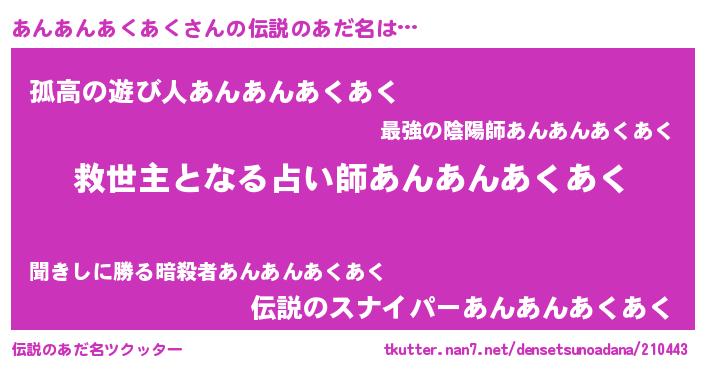 | ピコ太郎風あだ名 | 『アア太郎』『アン三郎』『アコ六郎』 |