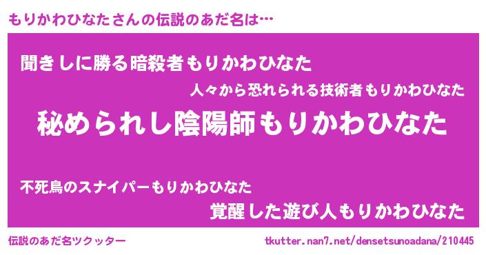 | ファンタジー風あだ名 | 『エターナルモリカワヒナター』 |