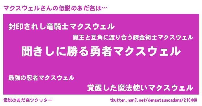 | ヒーロー風カッコイイあだ名 | 『仮面マクダー』『ネオマクスウェル』 |
