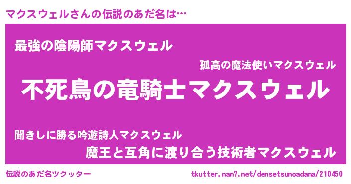 | 女子向けラノベタイトル風あだ名 | 『マクスウェルアンティーク』 |