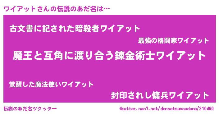 | 男性向けラノベタイトル風あだ名 | 『この素晴らしい世界にワイアットを!』 |