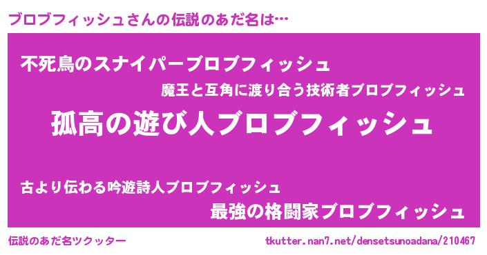 | 男性向けラノベタイトル風あだ名 | 『ブロブフィッシュスレイヤー』 |