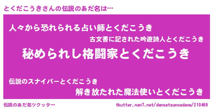 | 意味不明あだ名 | 『とくだこうきフォーエバー』 |