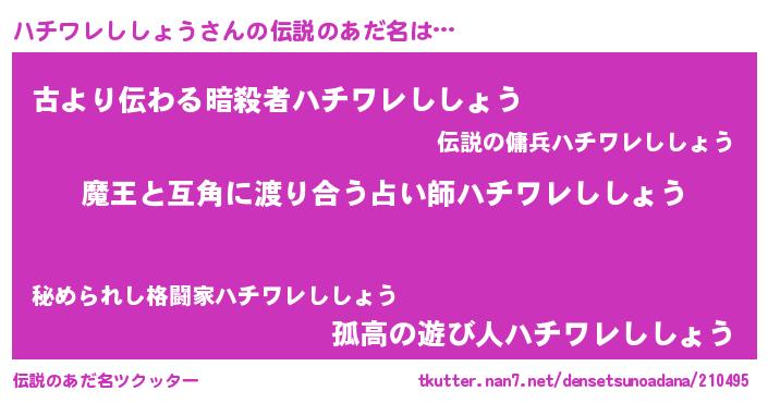 | 意味不明あだ名 | 『自称ハチワレししょう』 |
